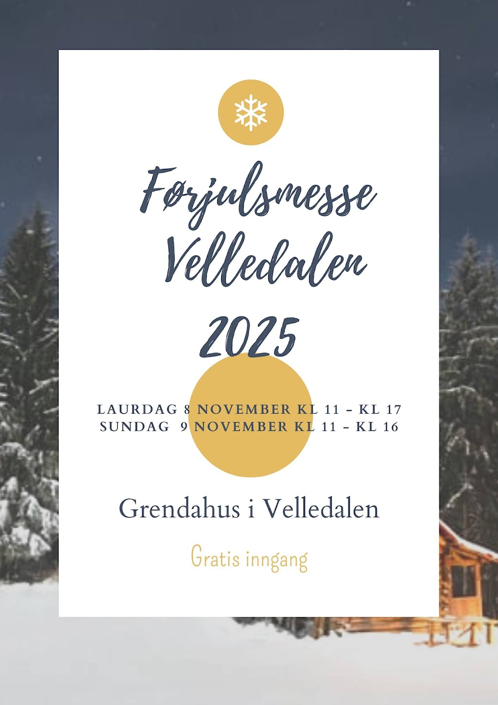 Dei siste åra har Velledalen IL arrangert Førjulsmessa åleine. Det trengst mykje folk, men heldigvis har vi positive medlemar og brukarar av laget sine aktivitetar som gledeleg stiller på til sine oppgåver. Vi vil at folk skal ha høve til å sende inn ønskje til kva dei vil gjere.