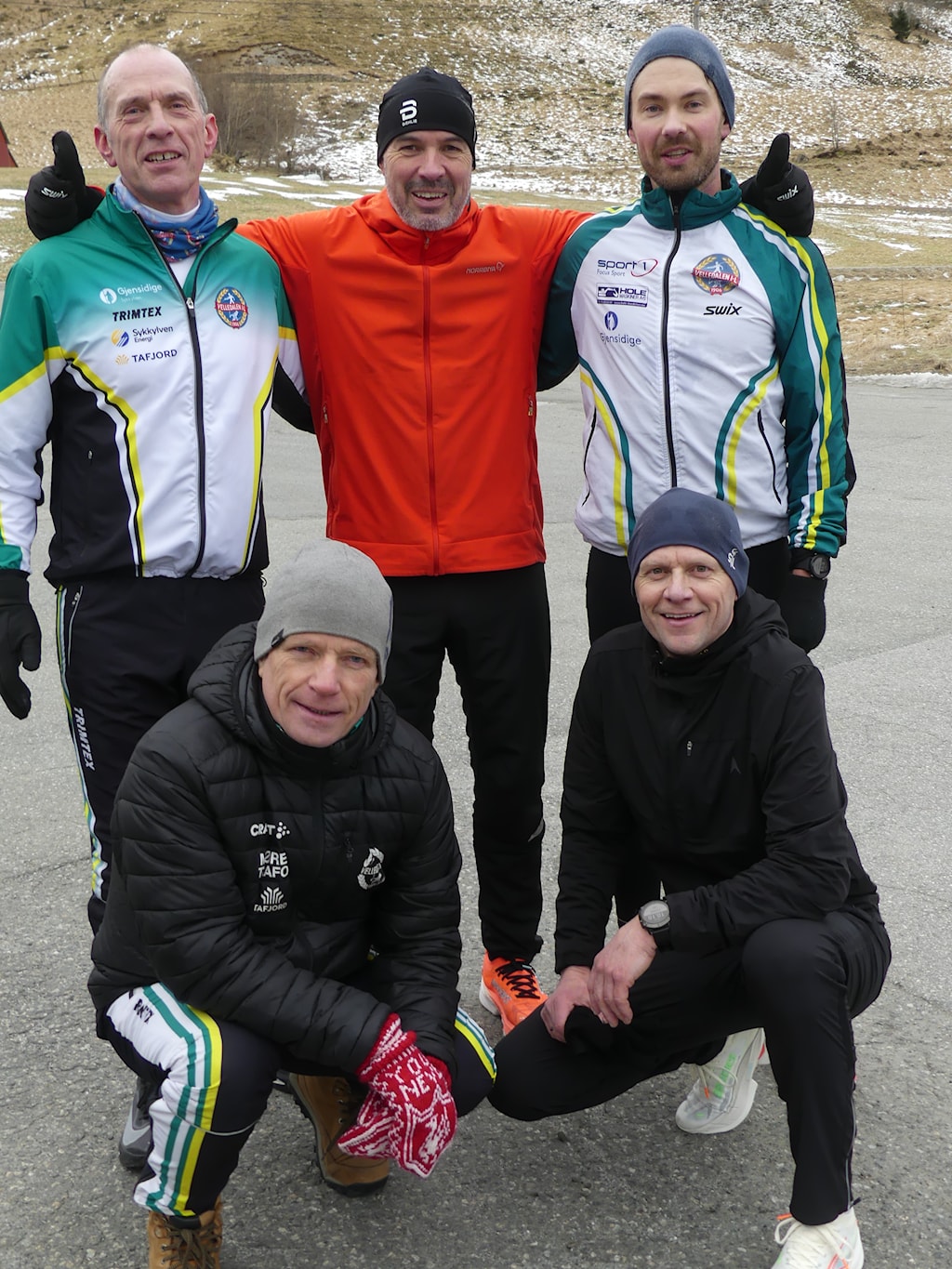 I dag, 31.januar, hadde Velledalen IL fellestrening i Straumgjerde. Berre fire frammøtte, pluss Alf Petter som «oppsynsmann». Karane gjennomførte 8 x 3 minutt med 60 sekund pause, under det som må kallast strøkne forhold, med omsyn til årstida. Dei fleste vil kjenne karane på fotoet, men vi tek med namna likevel: