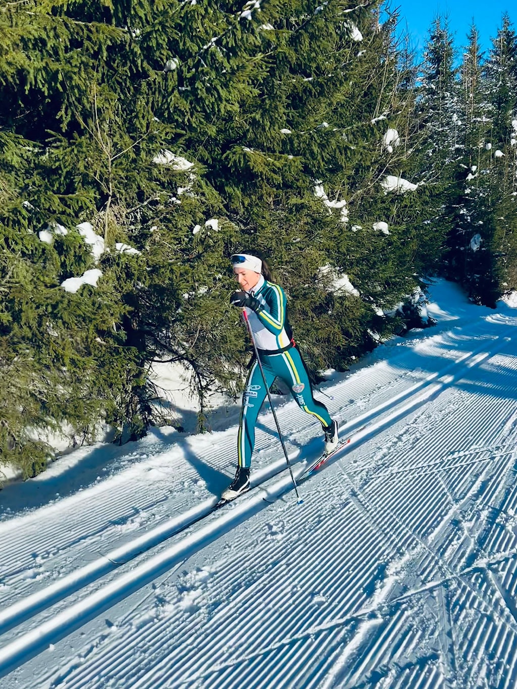 For nærare ti år sidan handla Velledalen IL inn tre stk langrennsdressar. Dei gjekk raskt ut. Og faktisk er dei ganske fine. Ellen Marie Hole er mellom dei få som har, og ho har nyleg vore ute i marka og lufta Velledalen IL sin vinterkolleksjon (sjå foto!).