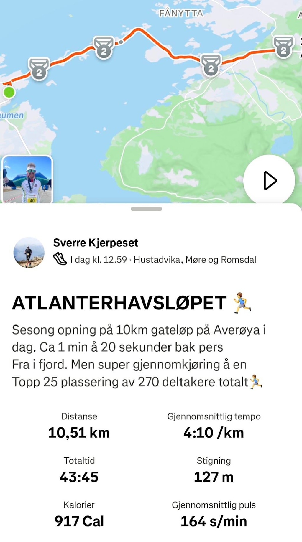 Glimrande av Sverre Kjerpeset – nummer fire i klasse M 40-44 under Atlanterhavsløpet 10,5 km